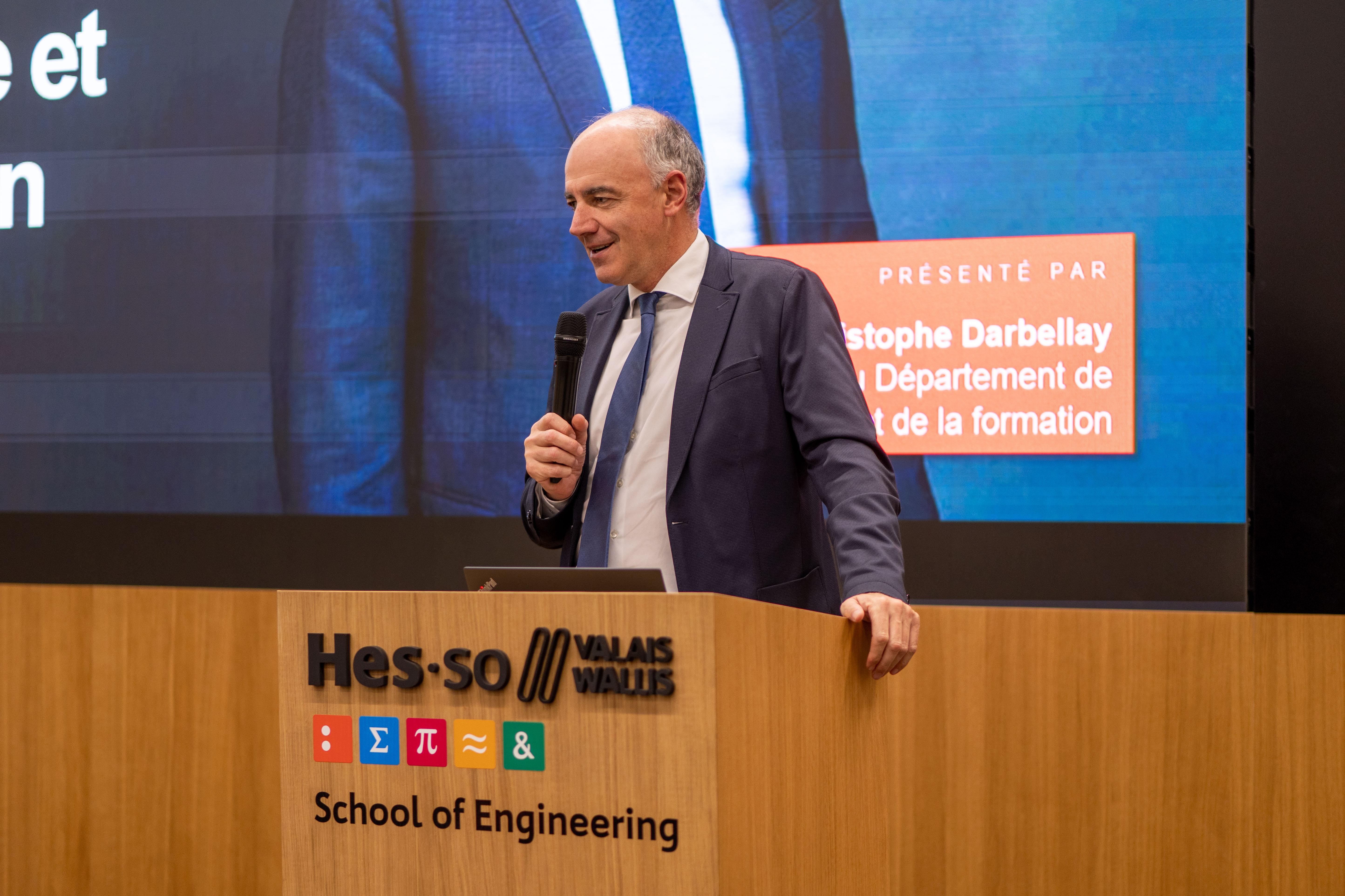 The demonstrator was inaugurated on Friday, 21 November, in a ceremony attended by Christophe Darbellay, vice president of the Valais cantonal government and head of the canton’s department of economy and education, and Ambrogio Fasoli, EPFL Provost and Vice President for Academic Affairs. The demonstrator was presented to them by their hosts Gaëtan Cherix, director of the HES-SO Valais-Wallis School of Engineering, and Léonard Evéquoz, head of the EPFL Valais-Wallis campus in Sion.
