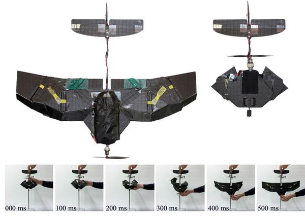 Dufour, Louis; Owen, Kevin; Mintchev, Stefano; Floreano, Dario, A Drone with Insect-Inspired Folding Wings, 2016 IEEE/RSJ International Conference on Intelligent Robots and Systems, IROS, Daejeon, Korea, October 9-14, 2016.