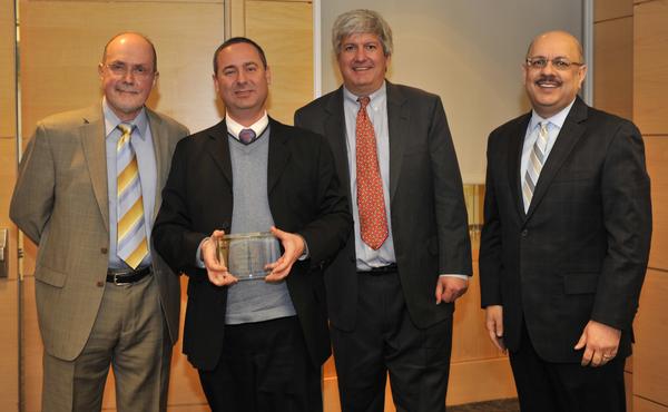 Martin Benjamin with high-ranking officials at the White House Big Data Event, "Data to Knowledge to Action", in Washington D.C., November 2013. Here he is receiving recognition in the context of the federal research program "Networking and Information Technology Research and Development".