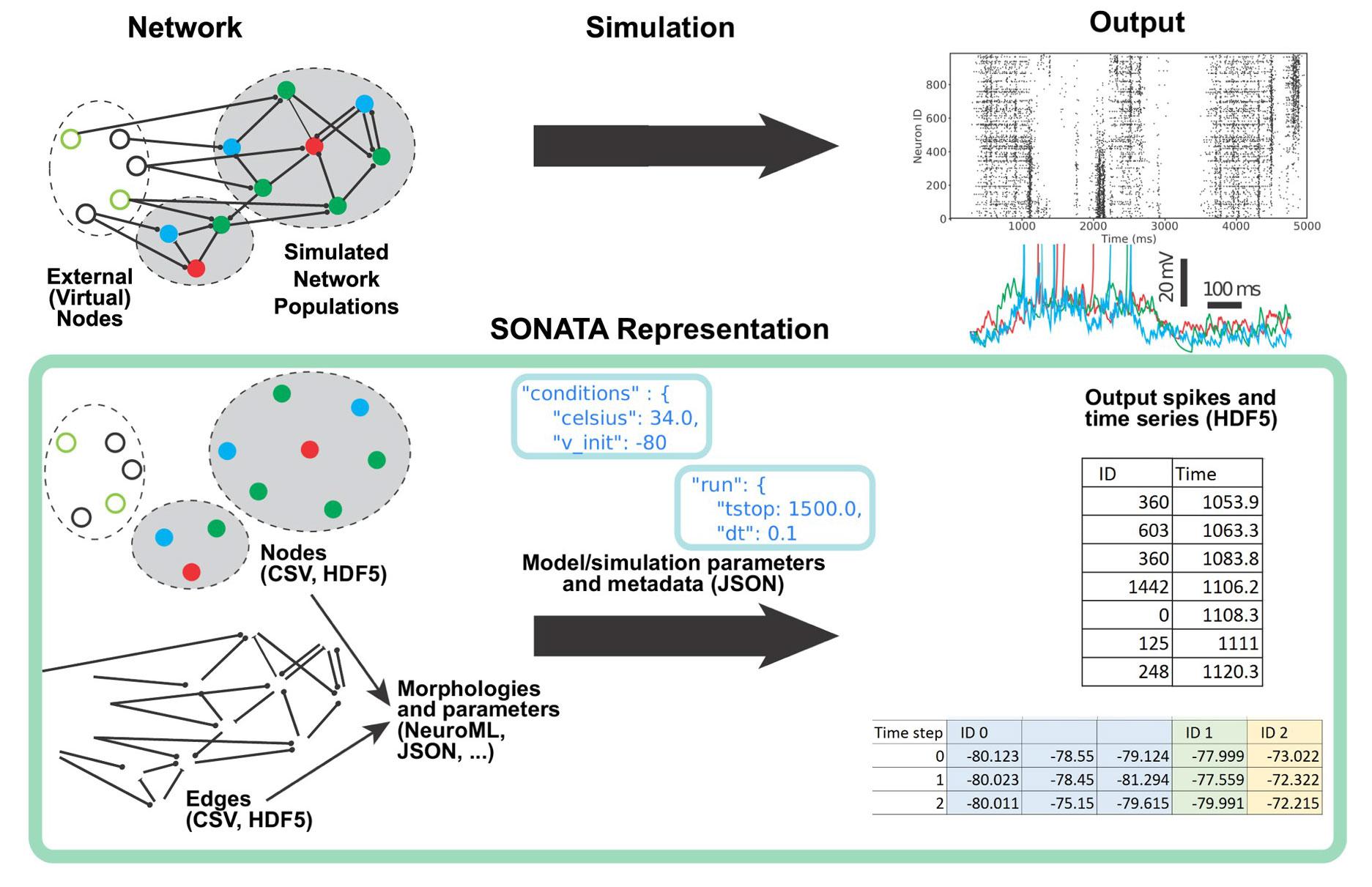 Dai K, Hernando J, Billeh YN, Gratiy SL, Planas J, Davison AP, et al. (2020) The SONATA data format for efficient description of large-scale network models. PLoS Comput Biol 16(2): e1007696. https://doi.org/10.1371/journal.pcbi.1007696.