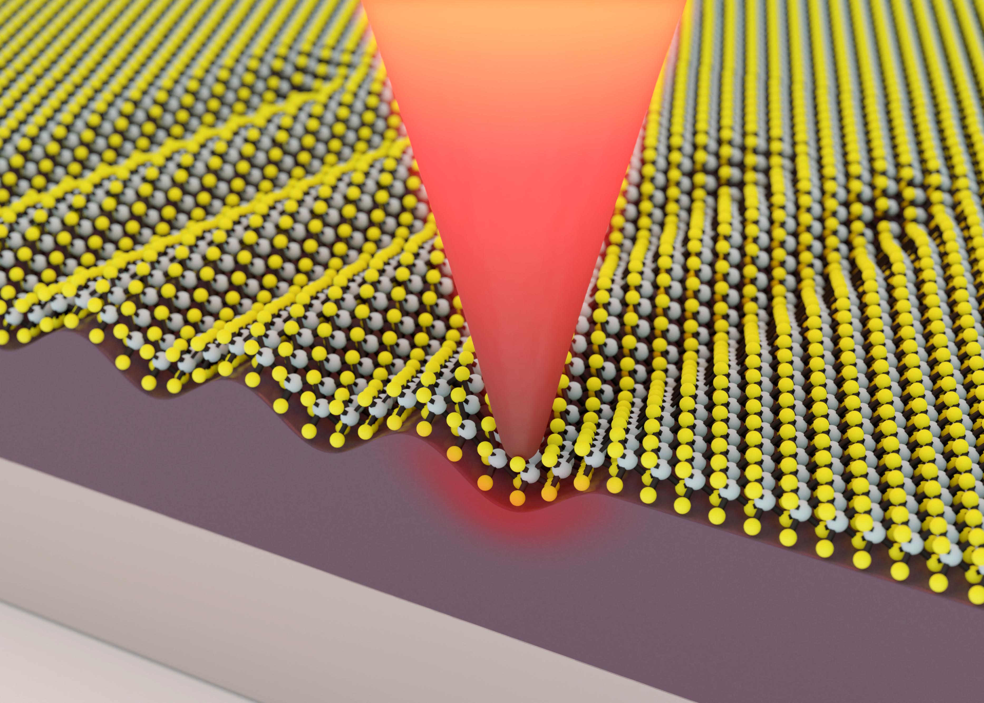 EPFL scientists have developed a method for changing the physical properties of 2D materials permanently using a nanometric tip. Their approach, which involves deforming the materials, paves the way to using these materials in electronic and optoelectronic devices.