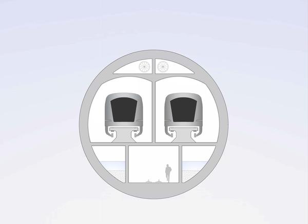 Notari focused on designing and calculating the dimensions of a double-track tunnel made out of reinforced concrete: an ‘underwater bridge’ – or to be more specific, a ‘floating underwater tunnel.’ Covering a distance of around 55 kilometers, the tracks would use magnetic levitation – or maglev – to get the train to travel at high speed. With this type of system, one set of magnets is placed on the tracks; a second set on the bottom of the train is repelled by the first, which pushes the train up off the track. In some cases, the repulsive force of the magnet is controlled by a current running along the track.