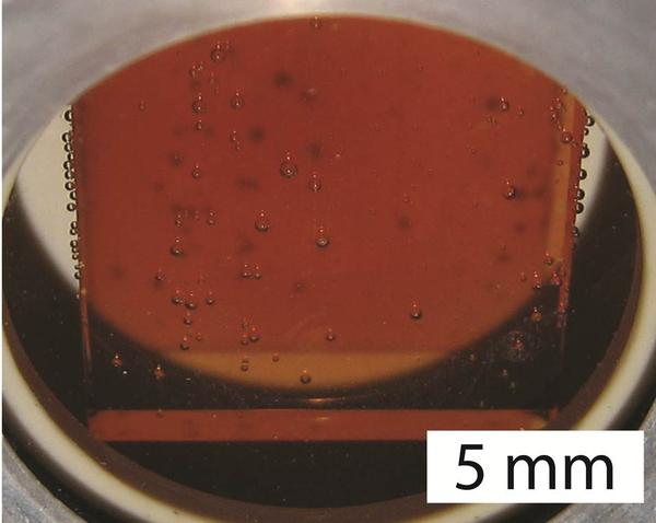 Hydrogen bubbles as they appear in a photoelectrochemical cell. © LPI / EPFL