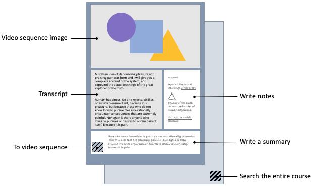 Course materials are designed to support students in reviewing and retaining lecture content. They compile video content into written form, enabling note-taking, summarisation, and easy access to specific segments of a course.
