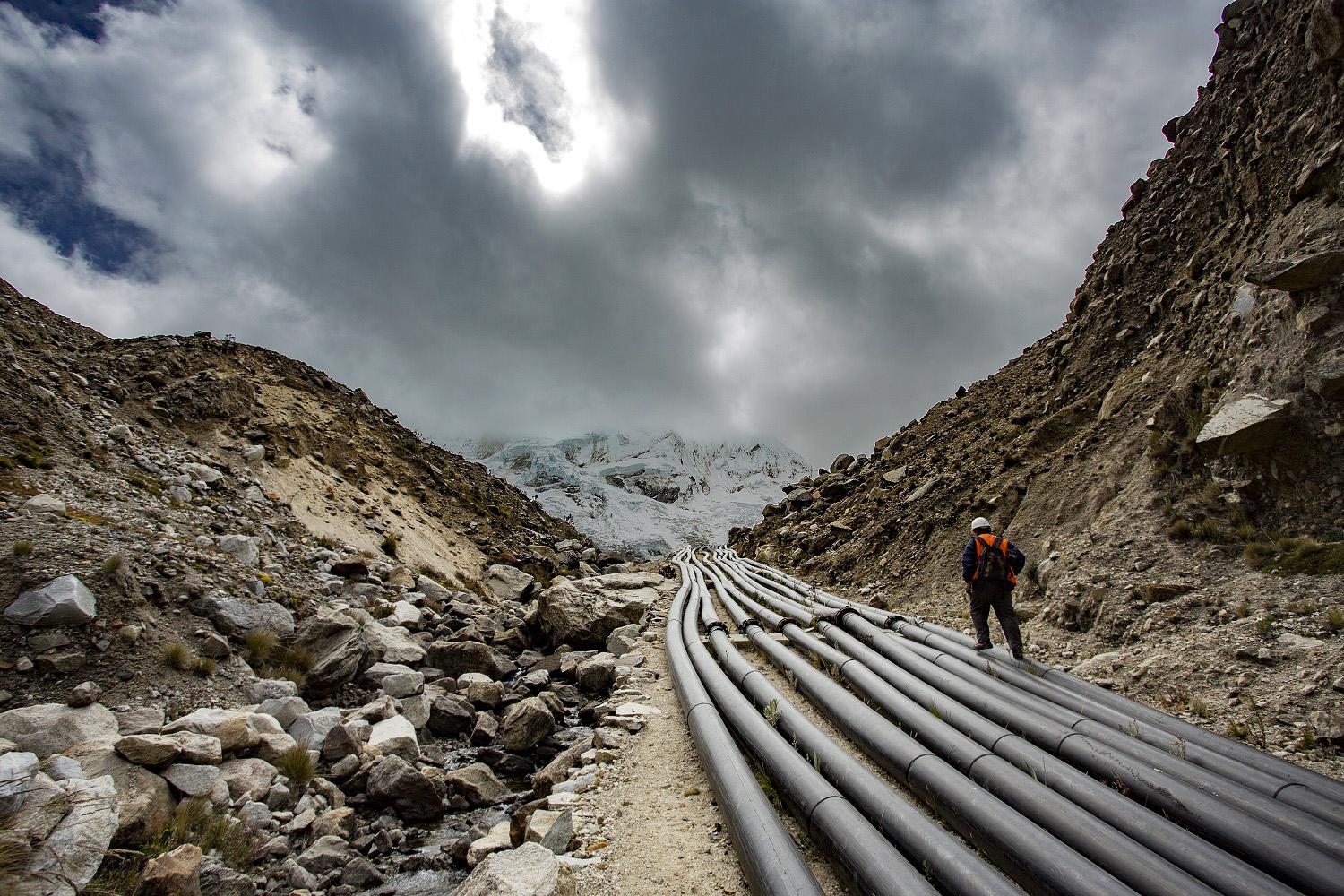 Installation de siphons près de la lagune Palcacocha. © Glaciares+