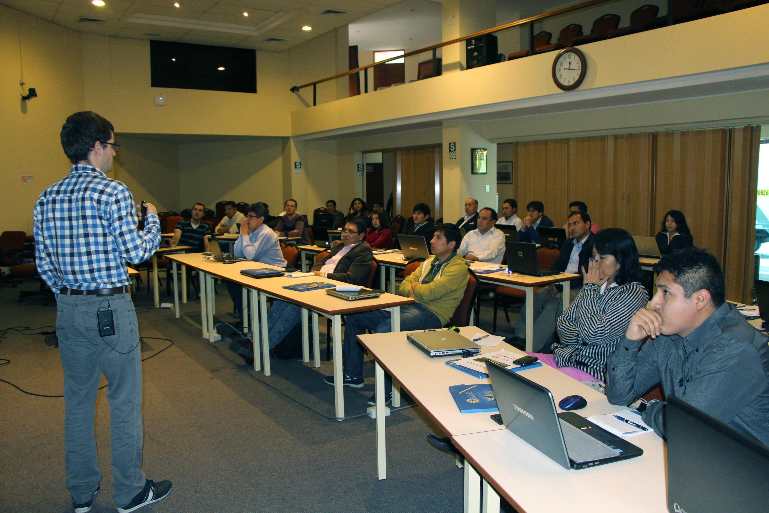 Alain Foehn durant un cours donné à des chercheurs péruviens. © A. Foehn/Glaciares+