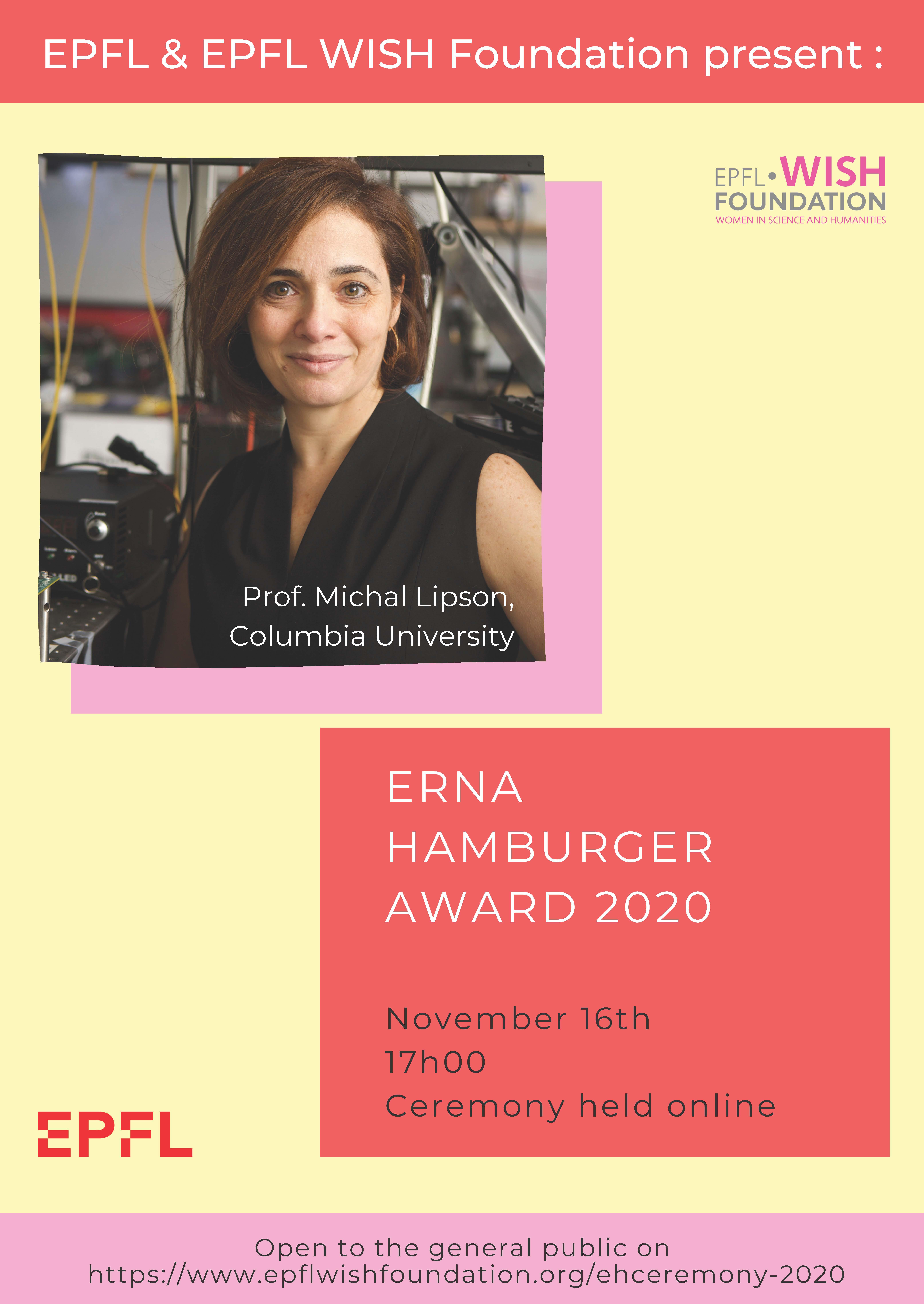 - Erna Hamburger Prize: every year the foundation's Council members and the Presidency of EPFL find the most influential woman in science, and offers her the Erna Hamburger Award. The laureate is invited for a private luncheon with female PhD students, giving them the chance to get valuable advice and mentoring from her. event gathers. A public event is organized as well in presence of a Swiss politician, the presidency of EPFL, the EPFL-WISH foundation and the laureate, to inform, educate and motivate the audience on the importance of having more women in all scientific backgrounds.