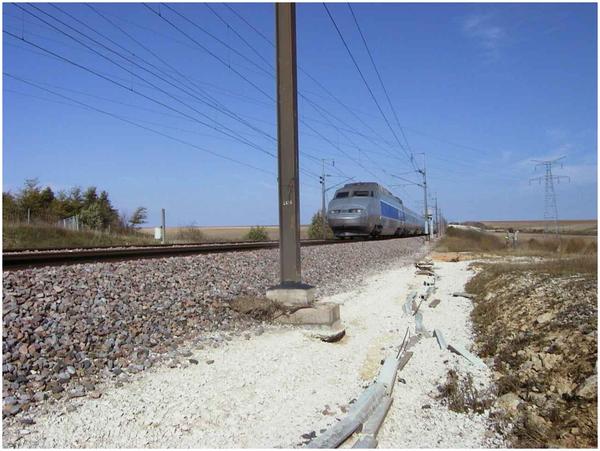 In 2000, this 2 km stretch, in which the tracks are lower than the surrounding land, was hit by an extremely violent storm. Torrential rainfall flooded the train line. Soil and vegetation torn up by the floodwaters was partially blocking the drainage infrastructures. The slope, combined with the bottleneck effect of a road bridge, served to accelerate the speed of the water, which reached the level of the tracks and eroded the ballast. Train traffic had to be interrupted for several hours to allow maintenance teams to make repairs.