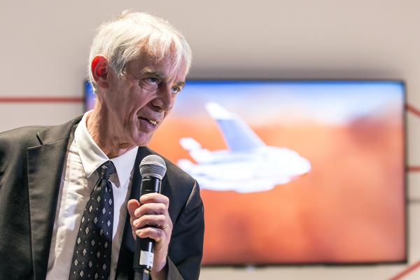 At the north entrance, in the huge hall set aside for the exhibition, there was a steady stream of visitors. At EPFL’s stand, they were fascinated by the modular airplane Clip-air, whose capsules can be removed from the wing to be transported by train. That future may still be far off, but today visitors could fly the modular airplane using a flight simulator. “The future of transportation demands new, often iconoclastic ideas,” said Martin Vetterli, EPFL’s next president, during a morning press conference.