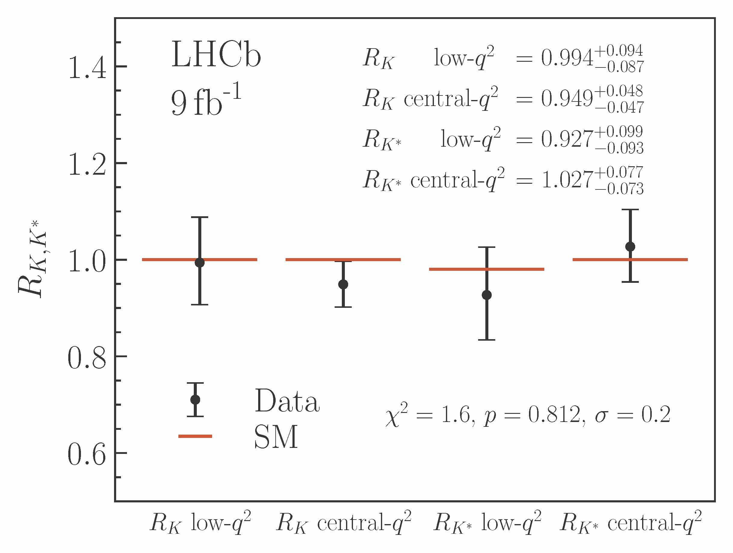 La mesure est conçue pour fournir une réponse ferme, à l'aide des données actuellement disponibles à LHCb, à un ensemble d'écarts par rapport aux prédictions de la théorie qui ont été signalés dans les mesures des désintégrations rares d'un méson B (contenant un quark de beauté, b) en un méson K+(0*) et une paire d'électrons ou de muons. Dans le modèle standard de la physique des particules, ces taux de désintégration devraient être égaux en raison de la même intensité d'interaction de tous les leptons avec les porteurs de force, une propriété appelée universalité des leptons. En même temps, plusieurs mesures antérieures ont indiqué que les désintégrations en électrons pourraient être plus fréquentes que celles en muons. La violation de l'universalité des leptons impliquerait une physique au-delà du Modèle Standard, comme une nouvelle force fondamentale en plus des interactions connues, à savoir gravitationnelle, électromagnétique, faible et forte. C'est pourquoi il est de la plus haute importance d'obtenir de nouvelles mesures de ces désintégrations rares.