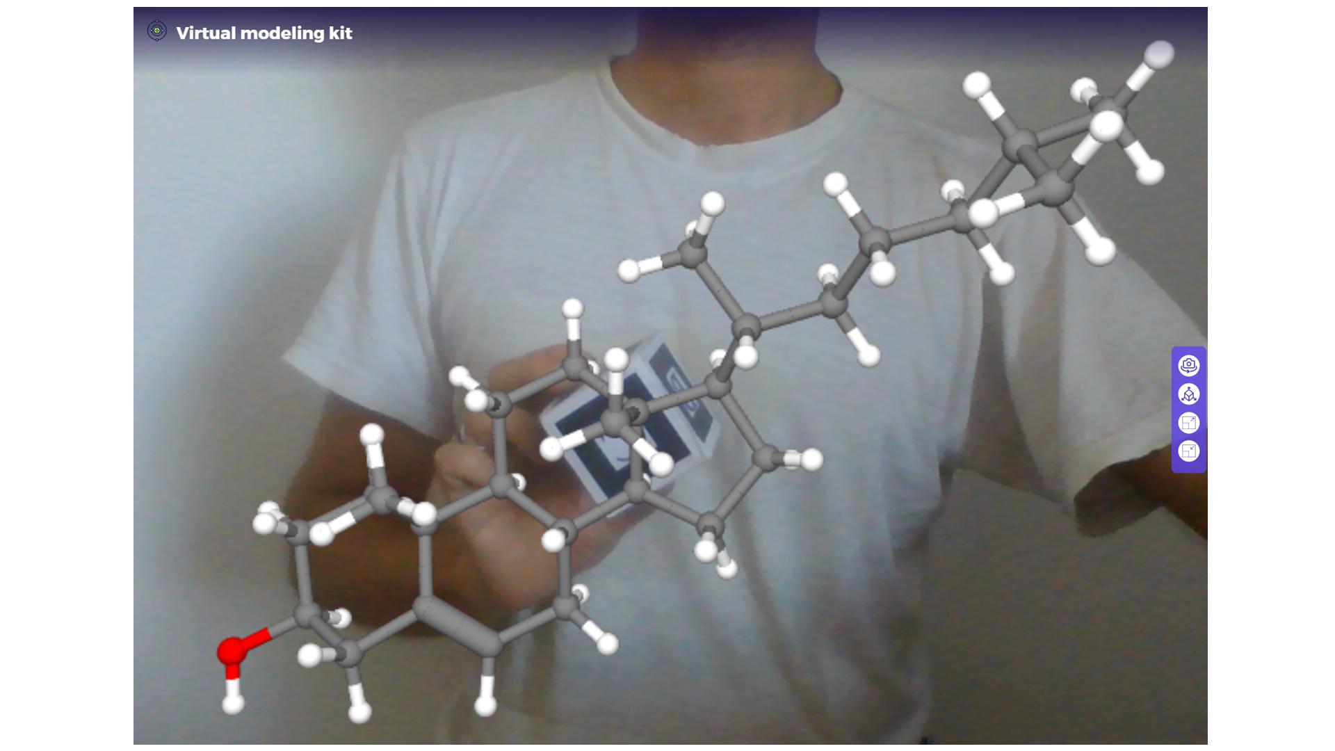 Les utilisateurs choisissent une activité dans leur navigateur web, et montrent à leur webcam des marqueurs RA préalablement imprimés sur papier. Chaque activité affiche des objets virtuels sur les marqueurs. L’utilisateur peut ensuite les déplacer dans l’espace pour inspecter leurs formes et les faire interagir via l’écran, en les superposant au monde réel. Les activités disponibles pour le moment sont adaptées aux cours de chimie et de biologie de niveau lycée et aux deux ou trois premières années de cours universitaires : formes moléculaires, orbitales atomiques et moléculaires, conformations et dynamiques moléculaires, équilibres acido-basiques, chiralité et énantiomérie, structures protéiques et assemblages biologiques macromoléculaires.