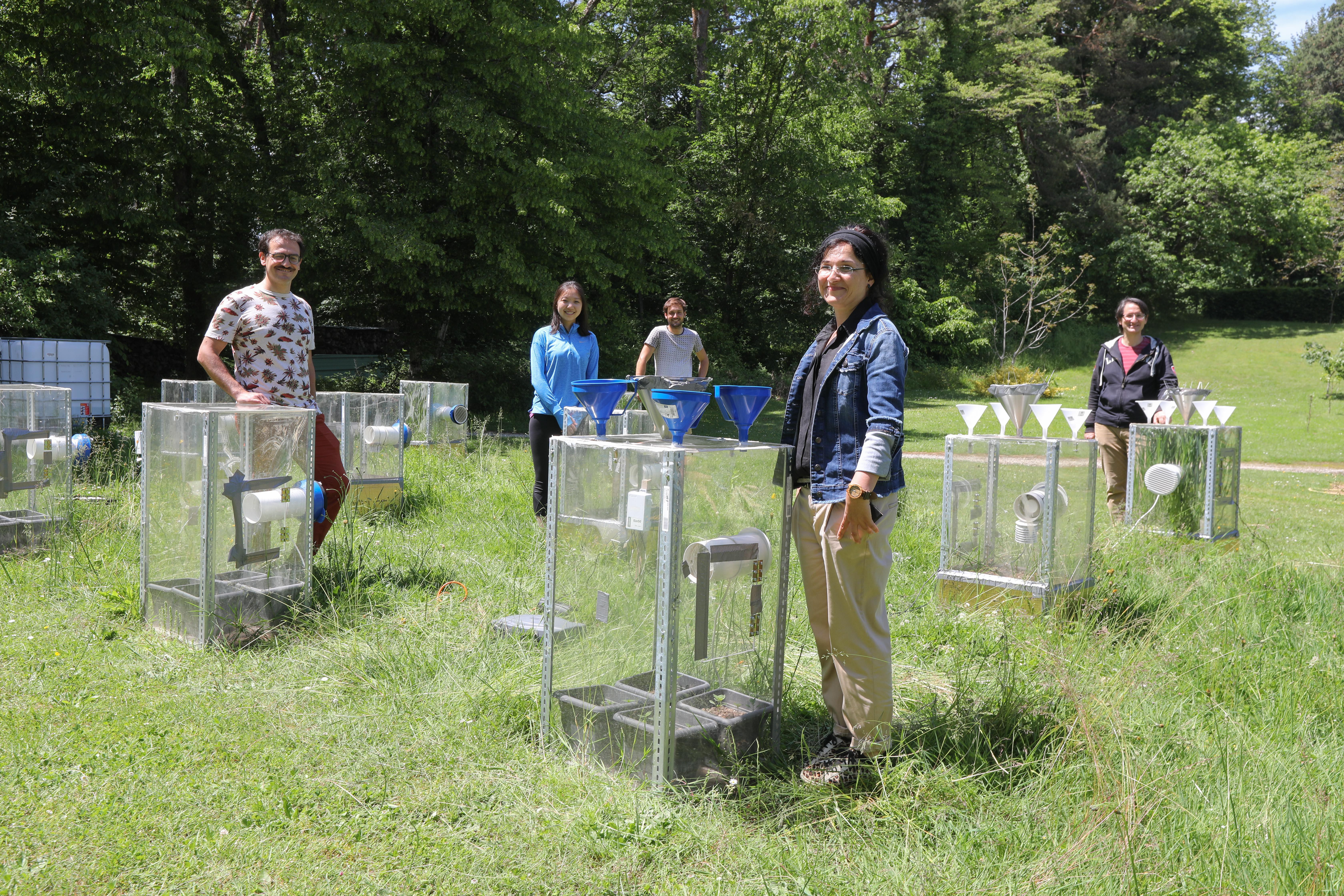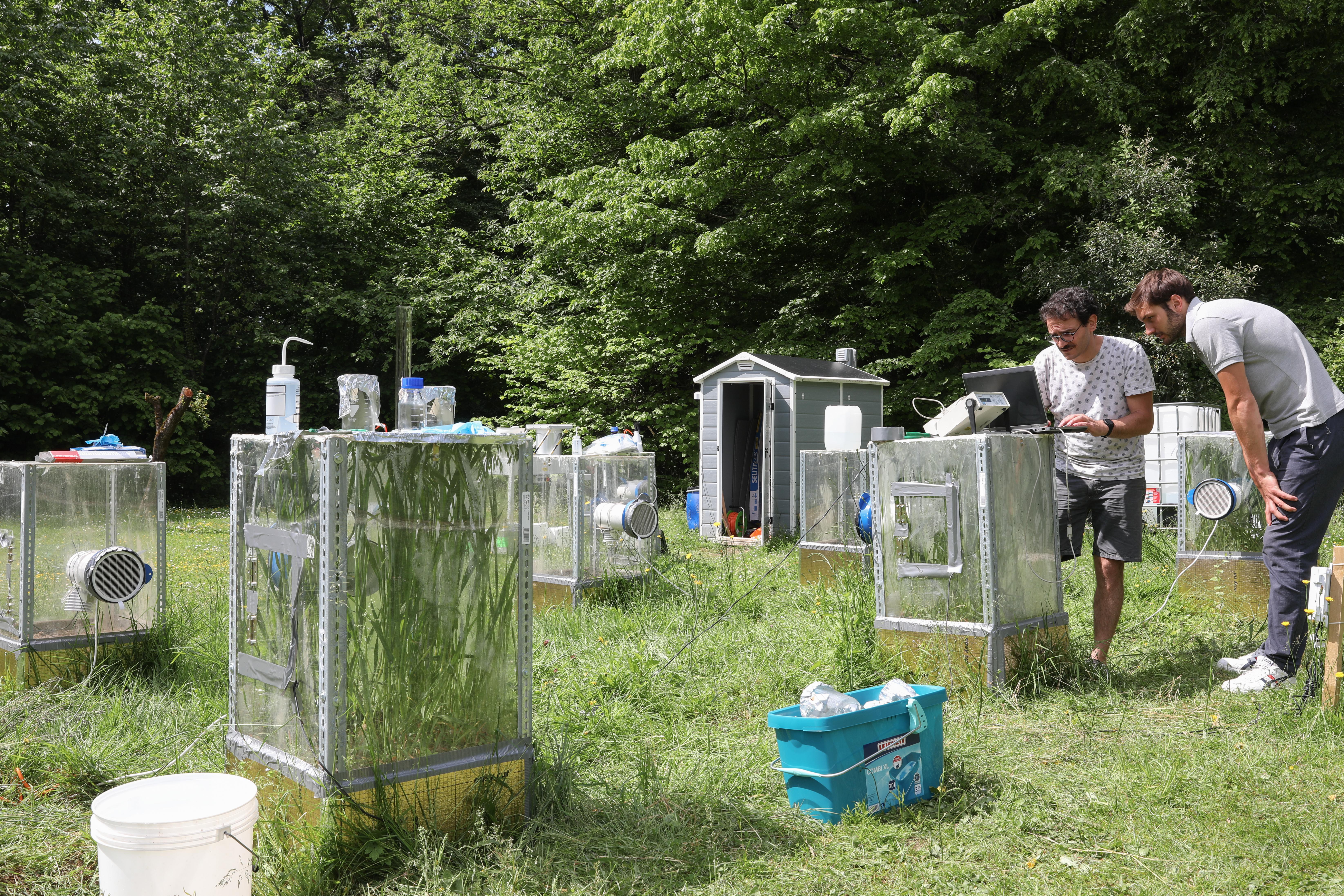 A team of EPFL scientists turned Bois-Chamblard park in Buchillon, on Lake Geneva, into a temporary research station for collecting experimental data. Their goal is to better understand how anthropogenic air pollution affects plant growth.