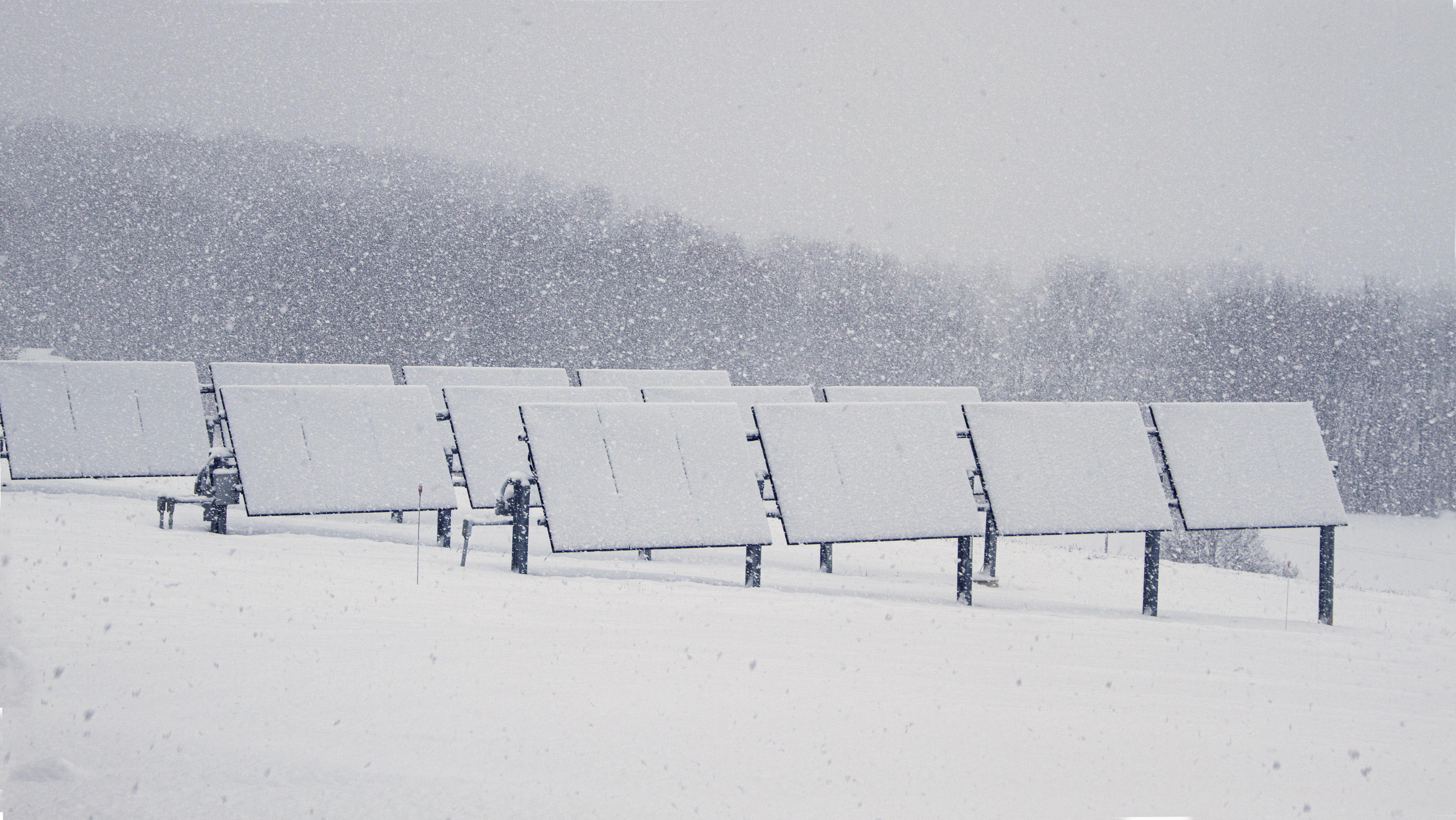 Panneaux solaire recouverts de neige après une tempète © 2ndLookGraphics