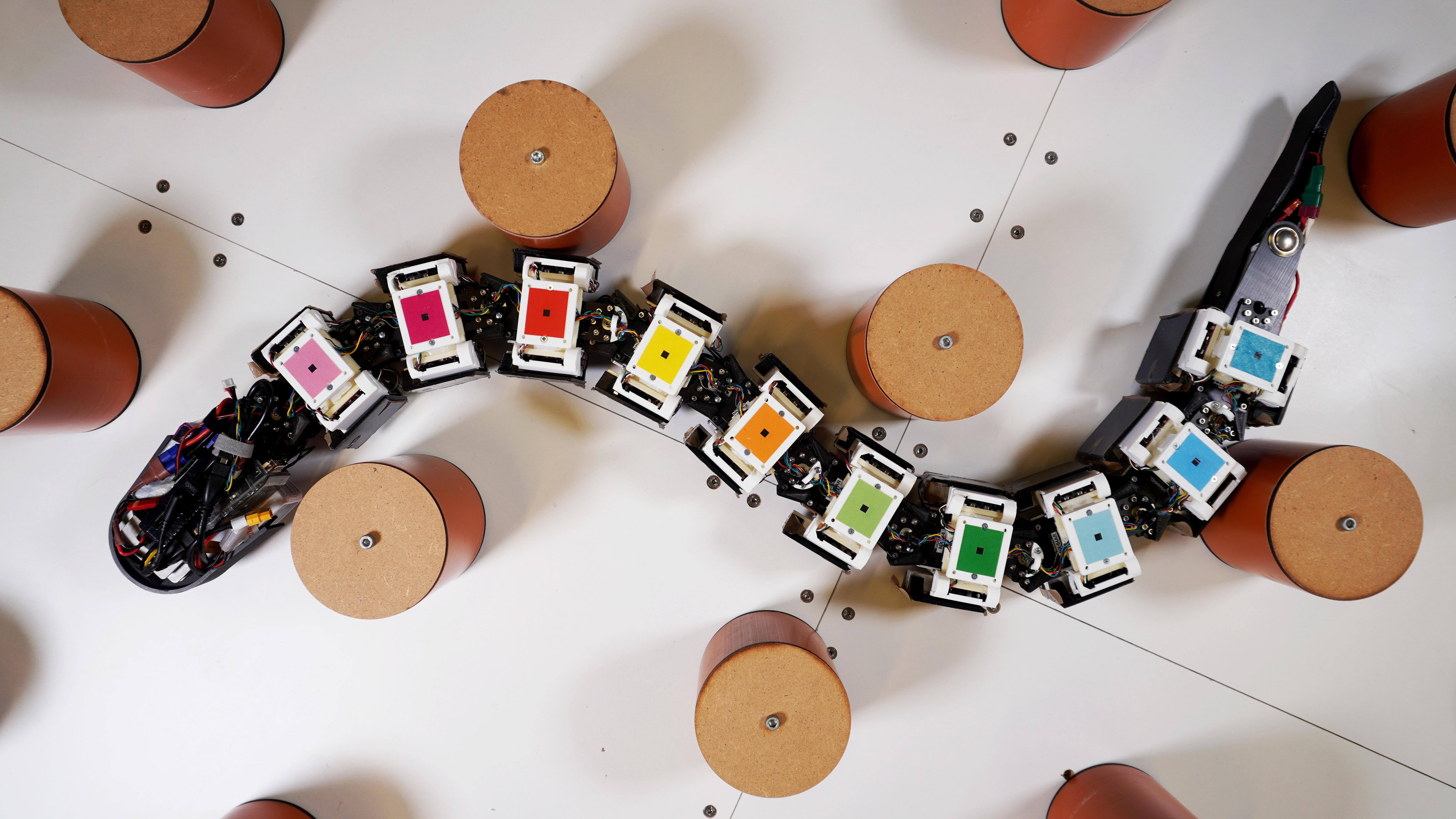 Le robot amphibie ressemblant à une anguille du Laboratoire BioRob. 2025 BIOROB EPFL CC BY SA