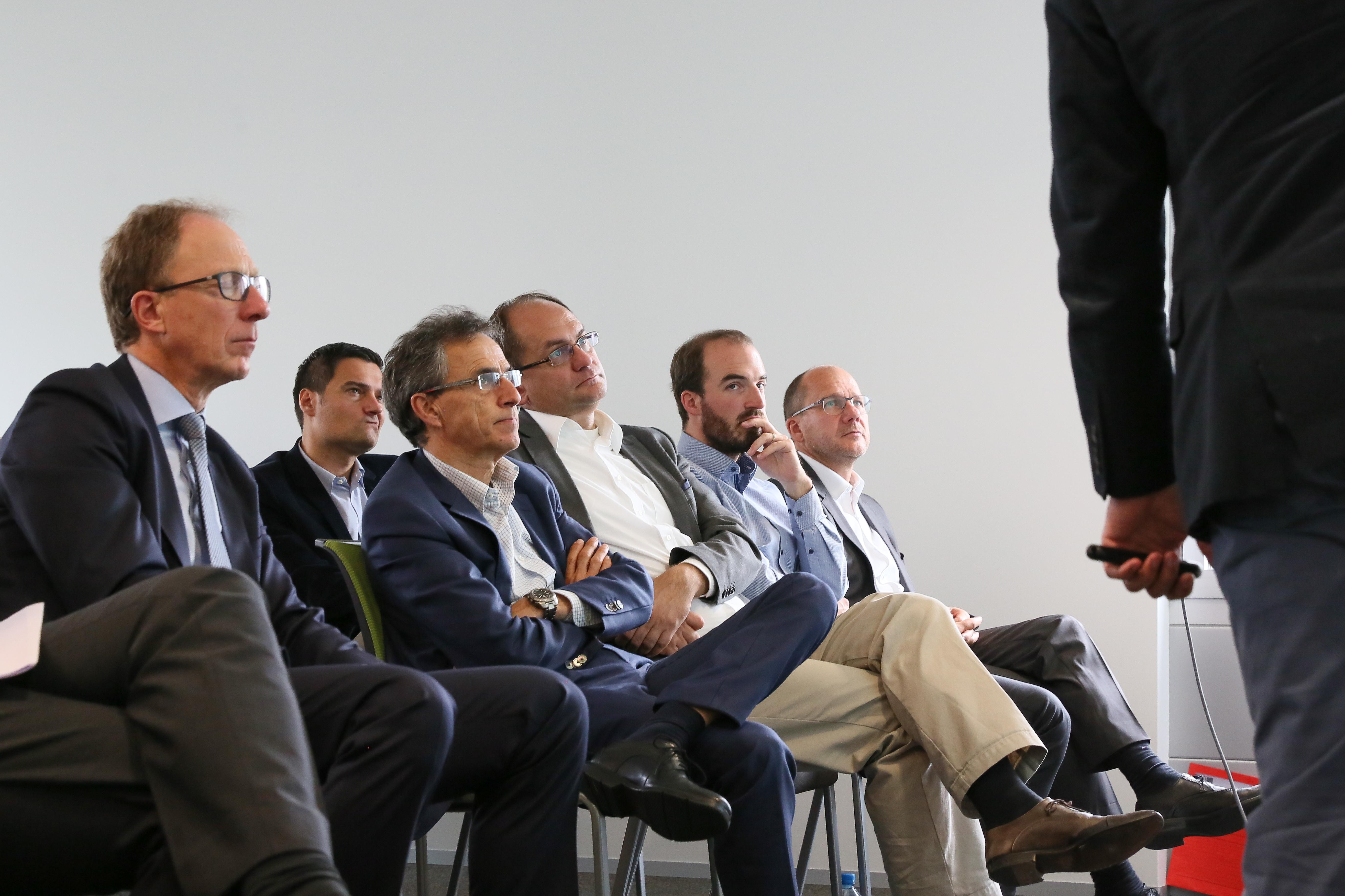 Etienne Marclay, EPFL, Pierre-Alain Urech, Romande Energie, Marc Gruber, EPFL. ©Murielle Gerber/EPFL