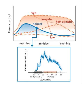 While cortisol helps our bodies respond to stressful situations, it’s actually a double-edged sword. It’s usually secreted throughout the day according to a circadian rhythm, peaking between 6am and 8am and then gradually decreasing into the afternoon and evening. “But in people who suffer from stress-related diseases, this circadian rhythm is completely thrown off,” says Ionescu. “And if the body makes too much or not enough cortisol, that can seriously damage an individual’s health, potentially leading to obesity, cardiovascular disease, depression or burnout.”