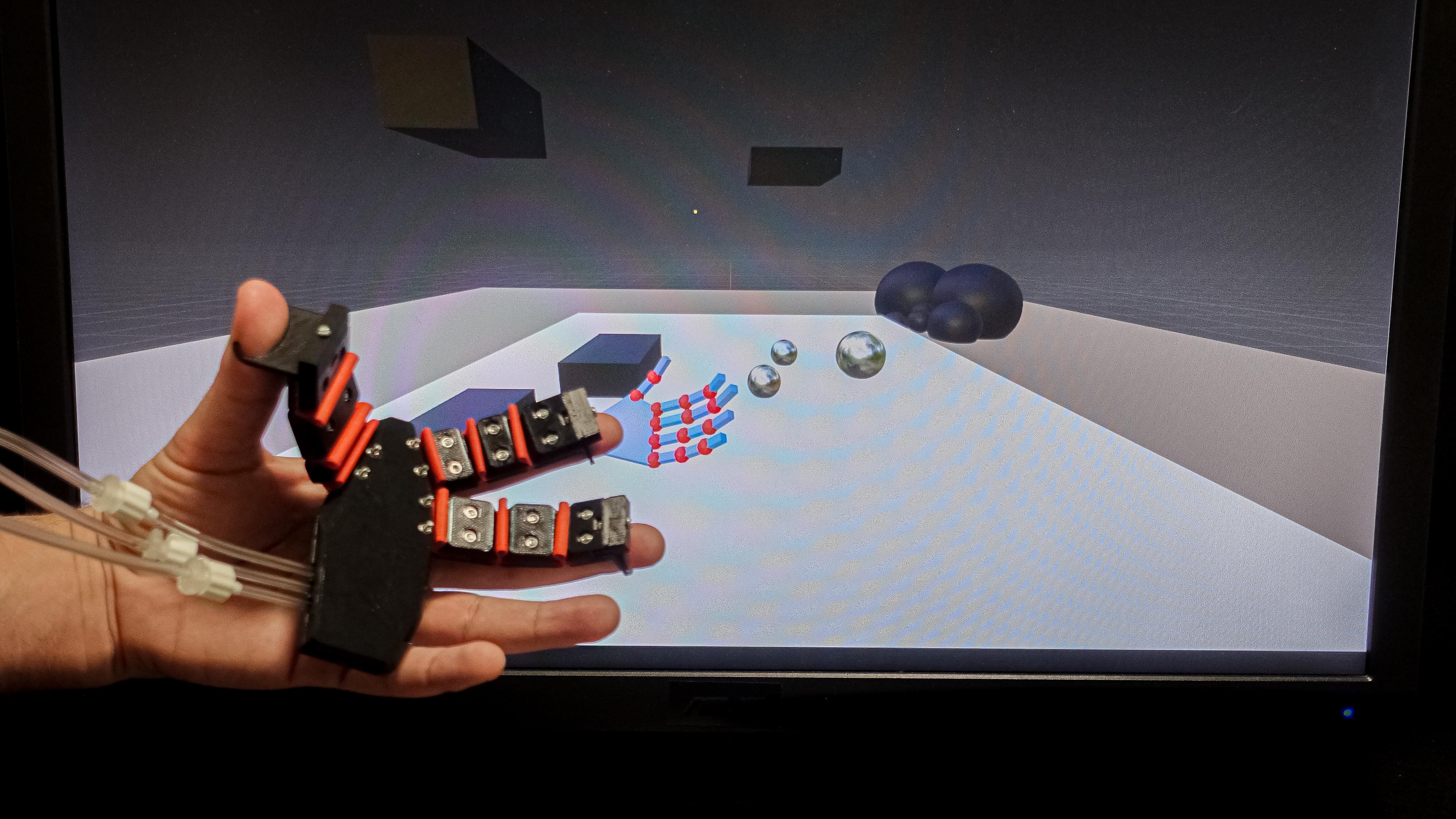 The Digits framework meets this challenge thanks to the signature reconfigurable robotics technology of Paik’s lab. Remarkably, it spans two major categories of robotic configuration: closed-chain and open-chain. While open-chain structures consist of series of connected links fixed at one end, like a robotic arm, closed-chain configurations usually have a loop design with two fixed ends. The open-chain TangiGlove therefore resembles an exoskeleton, which can be used to deliver stiffness feedback to the wearer. Meanwhile, the closed-chain TangiBall has four connected Digits that can assume up to eight different shapes – ranging from a cube to a sphere – in addition to providing stiffness feedback. Both devices can also produce vibrations.