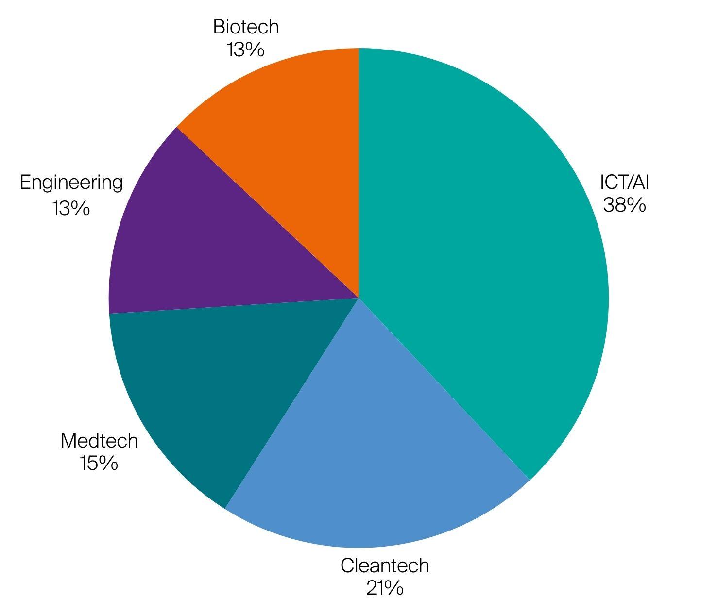 Enfin, les domaines représentés confirment la diversité technologique de l’EPFL. Si certaines tendances fortes se dessinent, notamment dans l’IT et l’IA, les secteurs de la cleantech, de l’ingénierie et de la medtech demeurent tout aussi bien représentés.