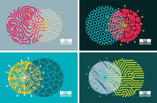 In order to modernise its image, and also for technical reasons linked to the card production, the back of the Camipro cards has been totally modified, and can be now found in 4 variations. These designs have been created by the graphist of the reprography, Anne-Sylvie Borter. They represent different research poles of the School.