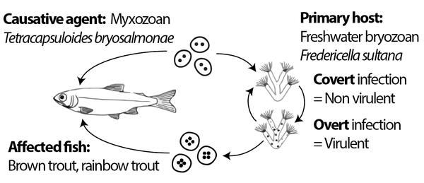 T. bryosalmonae contamination generates few symptoms in cold water but becomes apparent when the water temperature stays above 15 degrees Celsius for several weeks. Its deadly effect on both farmed and wild fish therefore lasts from the summer through early fall. Infected fish that manage to survive may continue excreting spores for several seasons. The researchers had to look at all such biological factors in order to model outbreaks.