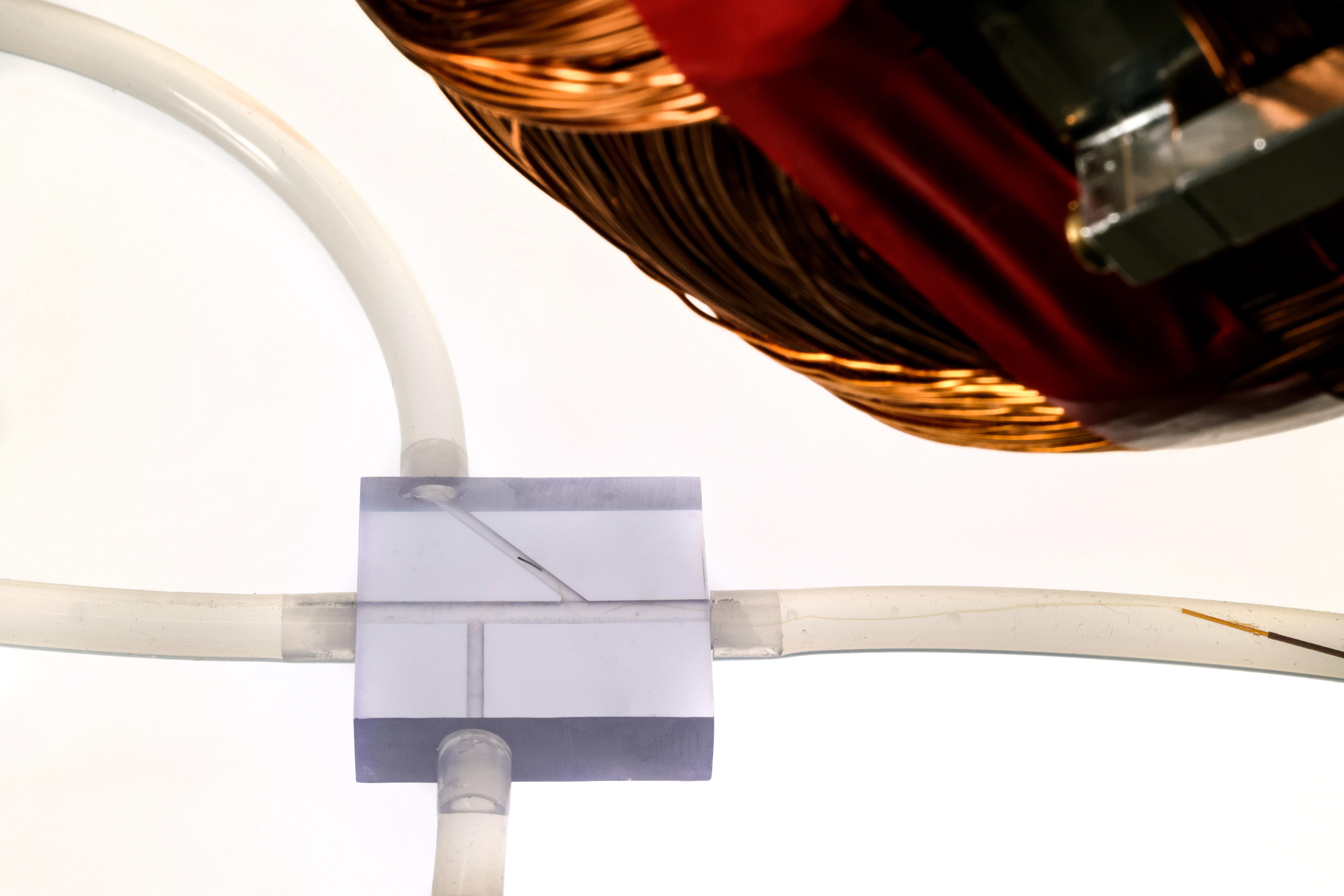 «Les cathéters ont l’avantage de ne pas poser de problème de retrait après utilisation et ne sont pas limités par la quantité de substance qu’ils peuvent transporter. Parallèlement, de nombreux vaisseaux sanguins se trouvent hors de portée d’un cathéter traditionnel», explique Selman Sakar. «C’est pourquoi nous avons développé et testé MagFlow: un microcathéter magnétique ultraminiaturisé – deux fois plus petit que les microcathéters de référence – qui minimise le contact avec les parois des vaisseaux en se laissant porter par l’énergie cinétique de la circulation sanguine.»