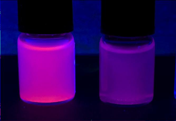 Photographie du SION-105 en suspension dans des solvants contaminés ou non par des ions fluorures. Crédit: Mish Ebrahim