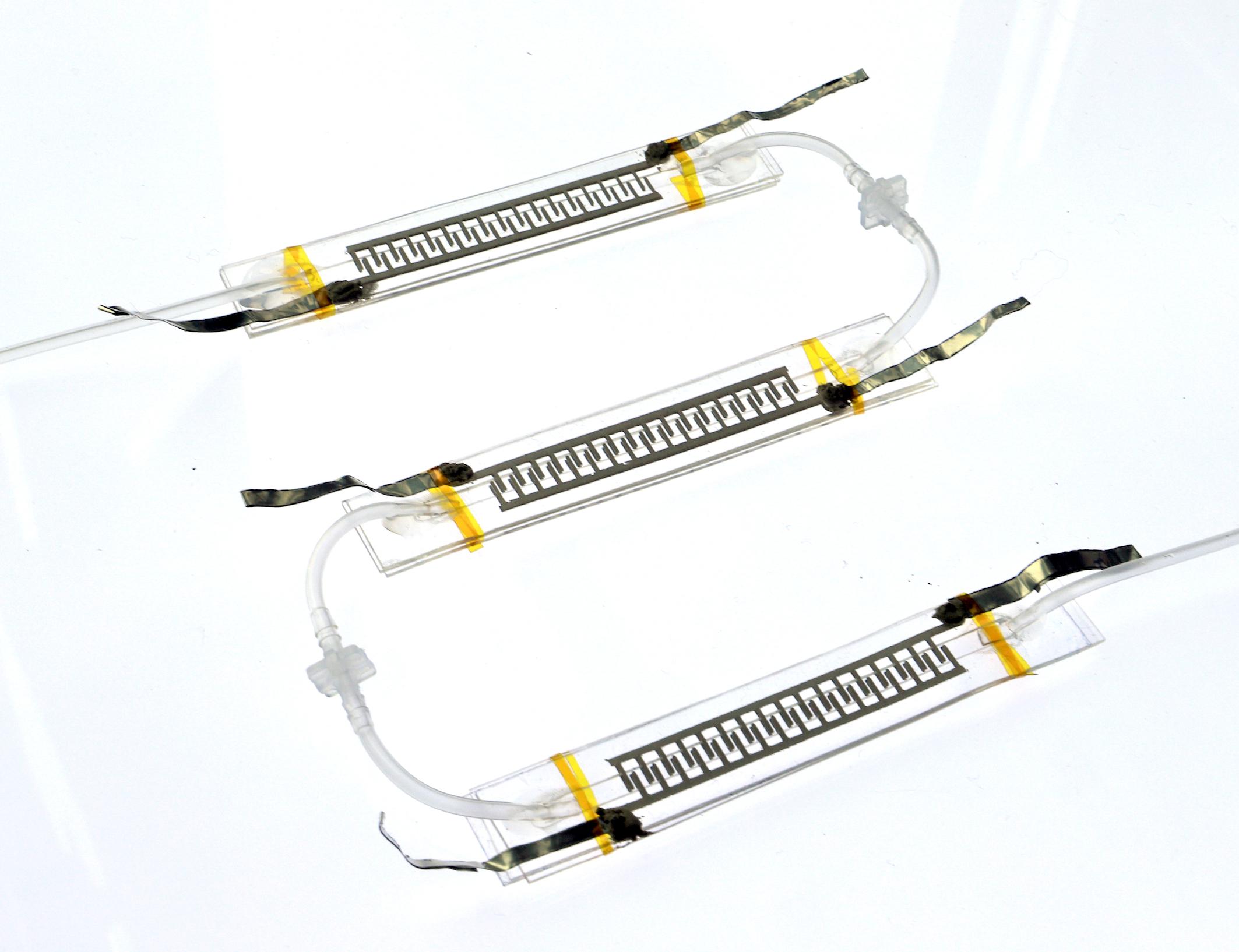 Le système est basé sur un mécanisme physique de circulation des fluides, déjà utilisé pour refroidir les superordinateurs. La pompe comprend un canal d’1 millimètre de diamètre renfermant un liquide diélectrique, et des rangées d’électrodes. Lorsqu’une tension est appliquée au système, les électrons sautent depuis les électrodes vers le liquide, et chargent électriquement certaines molécules. Ces dernières sont attirées vers d’autres électrodes, et poussent le reste du fluide dans les tuyaux. «Nous pouvons accélérer le mouvement en jouant avec le champs électrique, le tout sans aucun bruit», explique Vito Cacucciolo, postdoctorant au LMTS et premier auteur de la publication.