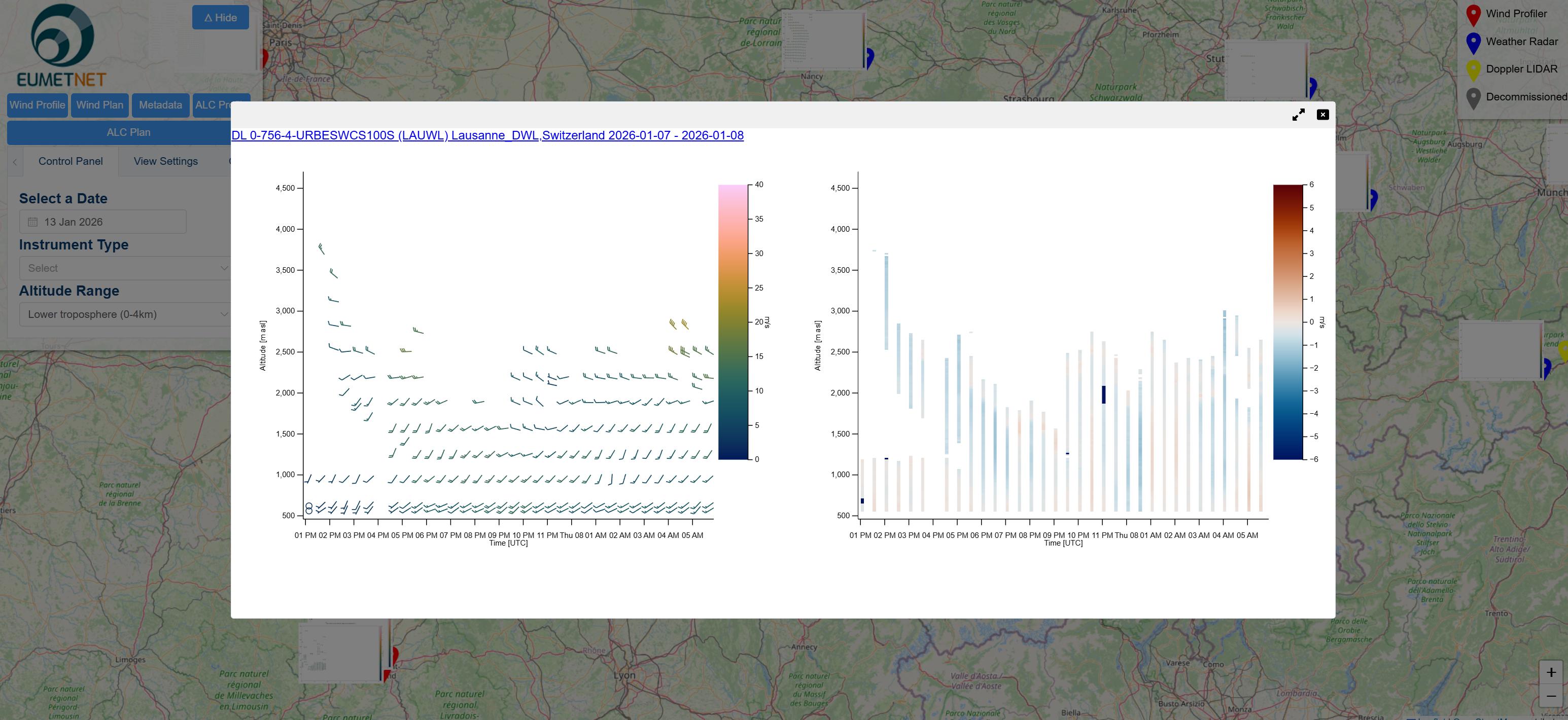 The doppler lidar installed at EPFL has been integrated into the EUMETNET E-Profile programme which collects, processes and disseminates vertical profiles of atmospheric properties.