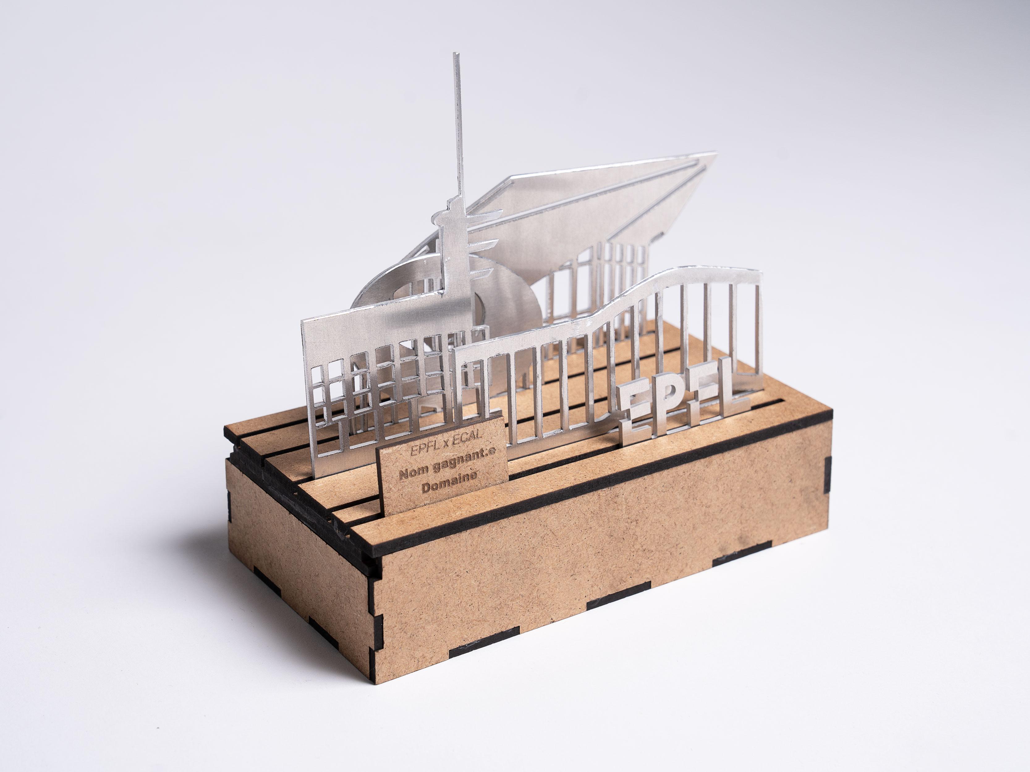 Leo Sierra, Tom Herrmann and Alexandros Dellios – all bachelor’s students in microengineering at EPFL – came up with the design that was selected for a new trophy that will be given to recipients of EPFL’s Alumni Awards at the master’s graduation ceremony, on 4 October 2025.